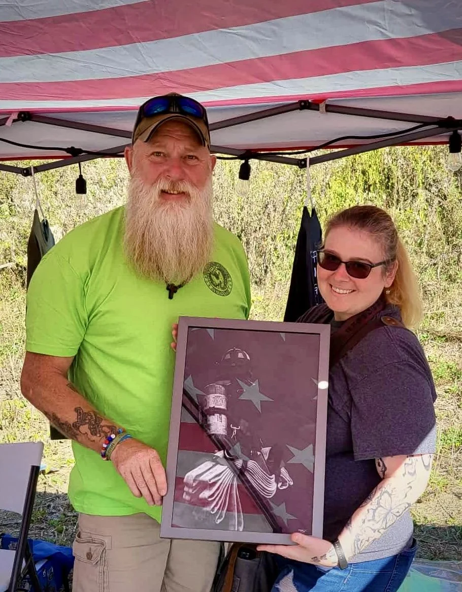 When I delivered the framed piece, something special happened. As we took a photo under the event tent, the American flag above us reflected across the glass — a completely unplanned but powerful moment that added even more symbolism to the image. Seeing the flag layered over The Call was a reminder of exactly what this work was created to honor: service, resilience, and the values that bind us together.