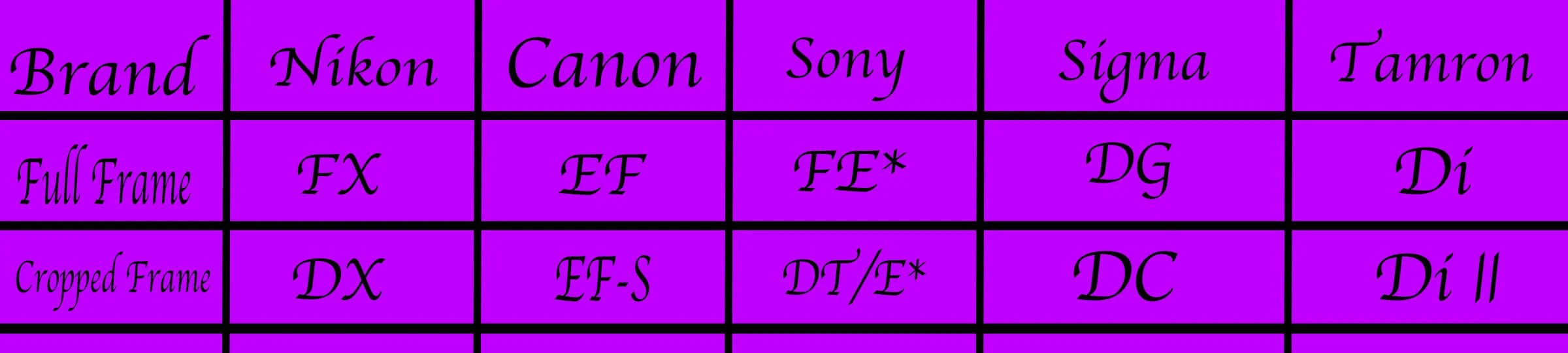Like any field, photography is ripe with acronyms for equipment and acronyms that are brand specific as well. Because nothing makes it more challenging than not being universal and of course hard to follow for those entering the field.