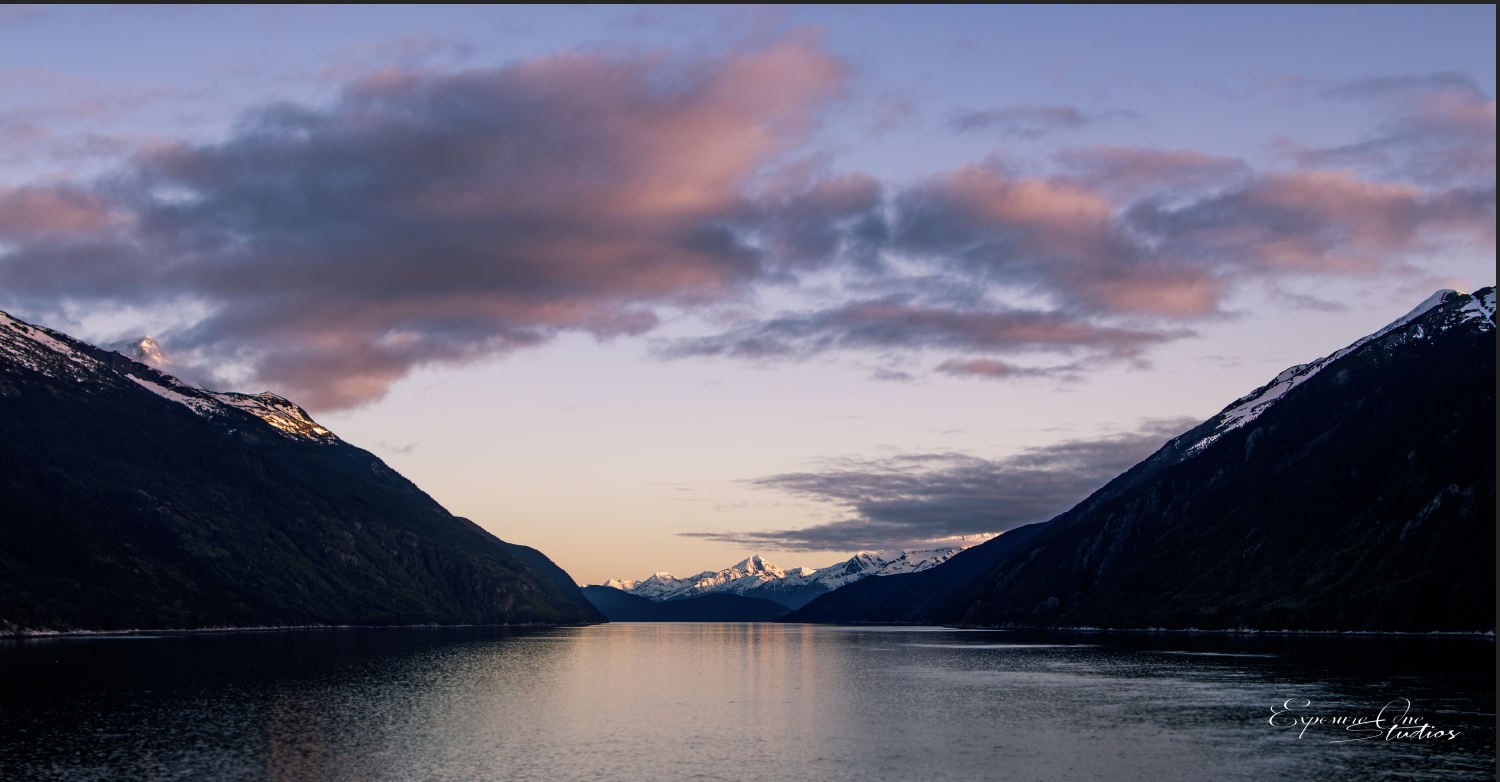 However; the image was totally made at sunset as we were pulling out of the Harbor on our cruiseship and it was one of the only days it wasn’t overcast and we could see the colors in the sky. You can just make out the pinks, purples, and oranges in the 2019 edit. I have always wanted to pull those tones out more and that is what I did for the 2024 edit.