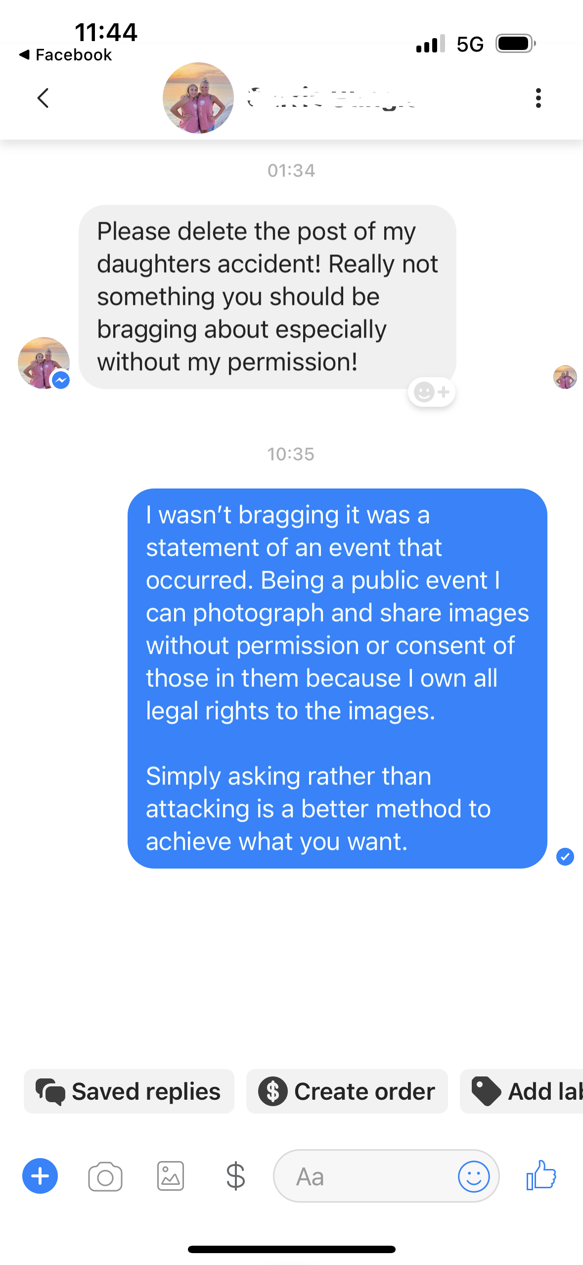 I have had riders clamor for wreck shots, I have sold canvas’s to cowboys who had to be revived in arenas, and I know my job and rights well. This message was one of the first I have received of a overbearing and under educated adult trying to push a narrative that didn’t happen. What you can read above is the entire conversation, I was not playing that day and knew this rider and parent were going to have to learn a lesson the hard way.